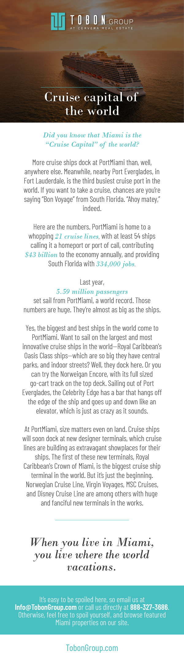 Email Drip Campaign for Tobon Group/Beach Club Realty: